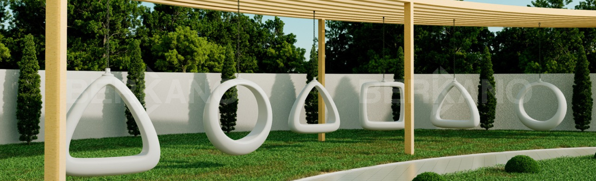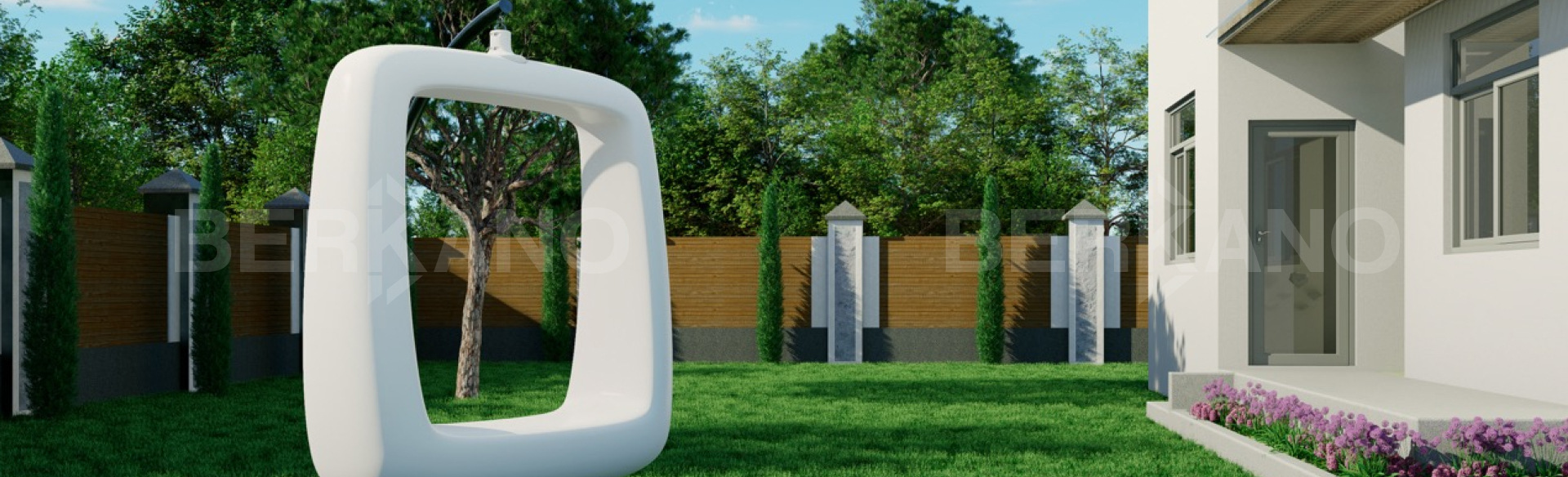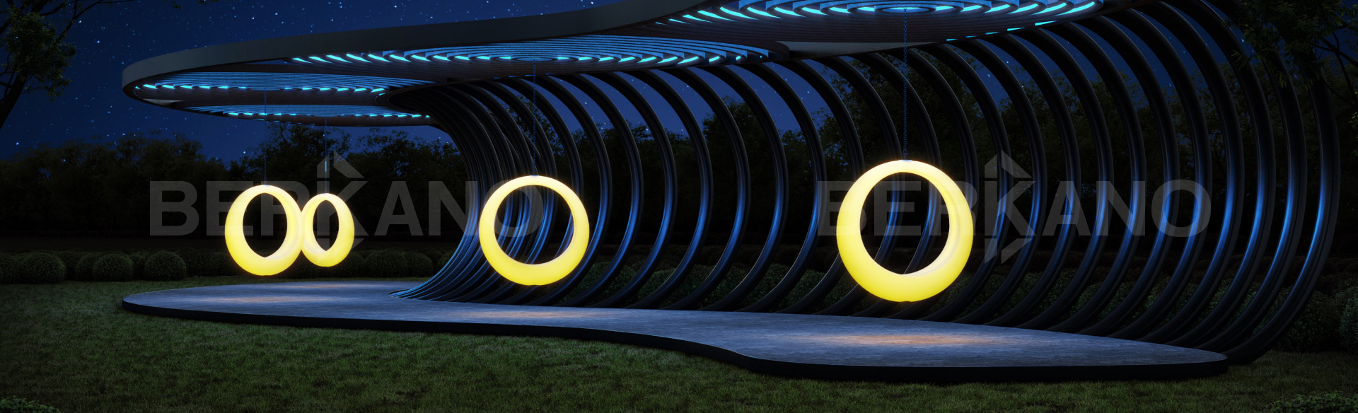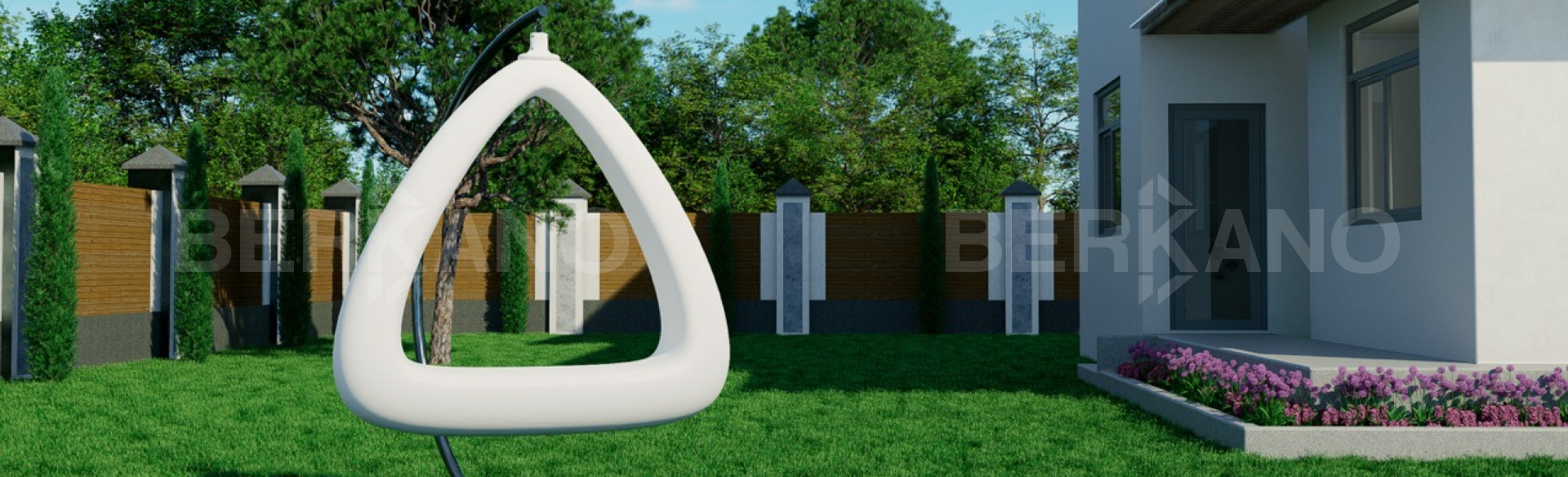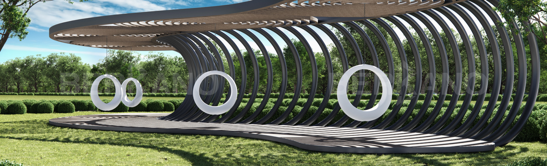 Арт-объект MOON доступен как отдельно для последующего монтажа подвеса, так и в комплекте с металлической, полукруглой перголой.