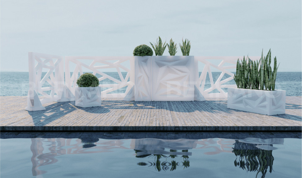 Различные сочетания перегородок и кашпо позволяют подобрать планировочное решение, подходящее Вам по стилю, фактуре, цветам, размерам, тем самым создавать уникальные интерьеры и экстерьеры.