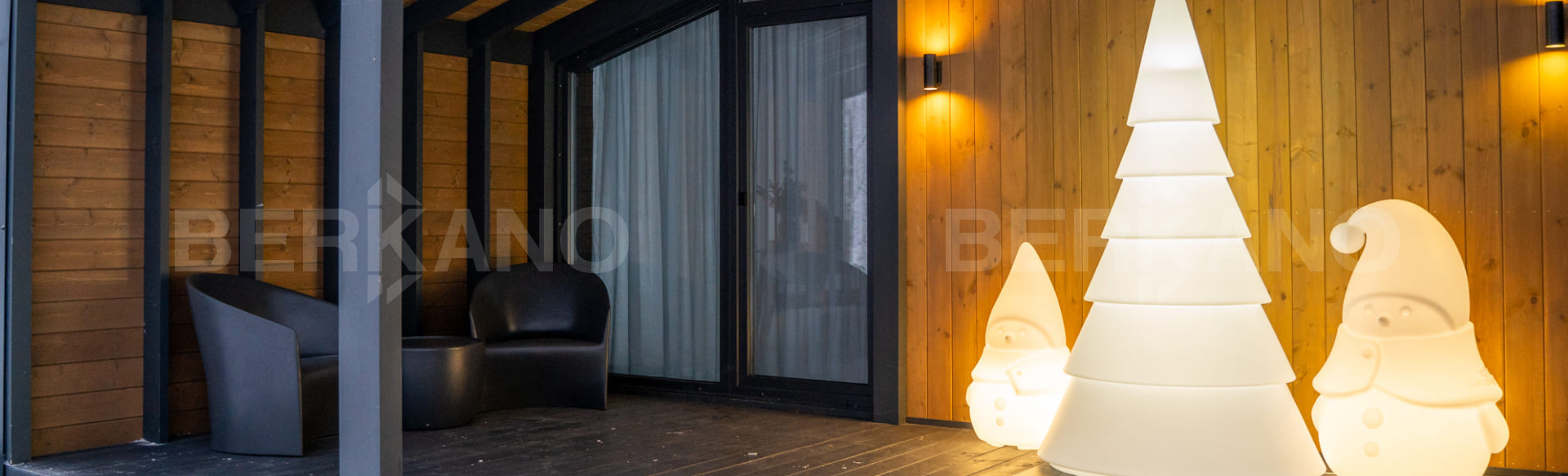 Наши световые композиции как нельзя лучше передают атмосферу загородного отдыха и праздника, переливаясь различными цветами. Им также не страшны любые погодные условия и перепады температуры, поэтому изделия Berkano будут долгие годы украшать территорию санатория и радовать его гостей.