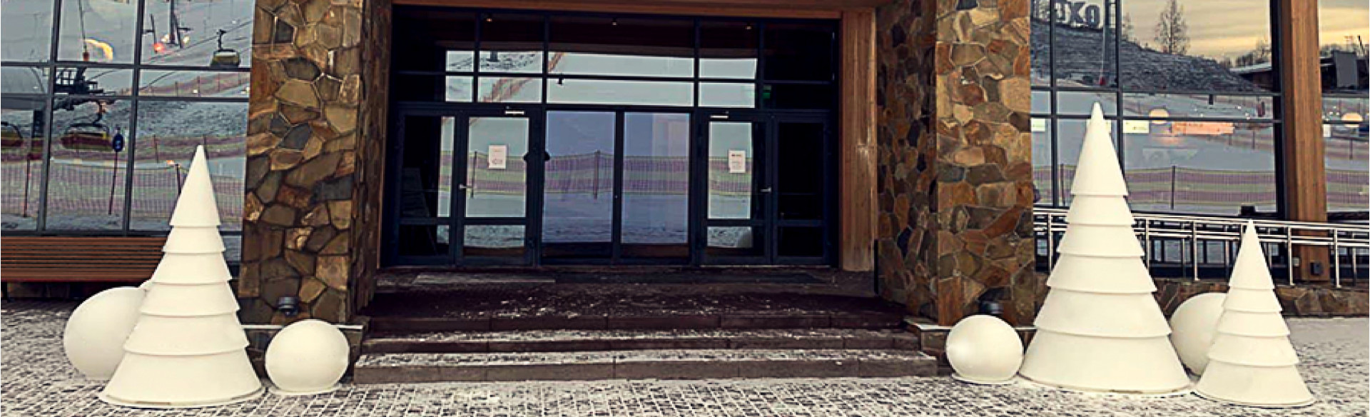 Ресторан Apresski входит в группу ресторанов Italygroup и расположен на территории горнолыжного курорта Охта Парк. Для проекта Apresski была подготовлена визуализация оформления входной группы ресторана, террасы и зоны отдыха «Перевал», в визуализации была показана концепция и указано точное расположение изделий. Композиции из брендированных изделий размещены на проходных местах и являются уникальными фотозонами. Использованы световые ели Eiswald, светящиеся led шары Orby и фигурки снеговиков Mr. Snowman. Композиции придают курорту особый зимний шарм и новогоднюю атмосферу.