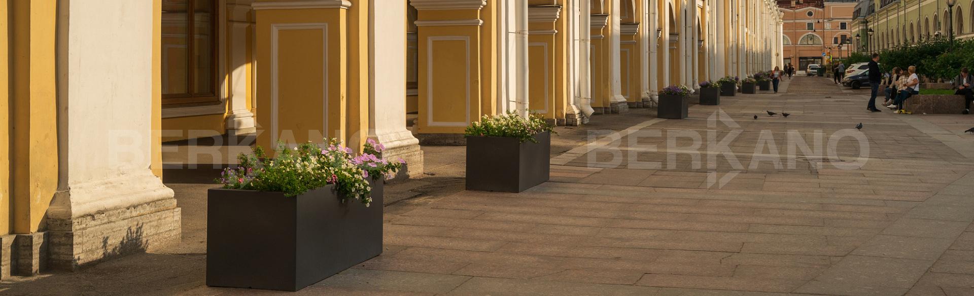 У этой улицы есть особенность — зелени здесь всегда не хватало. Узкое пространство, плотная застройка, туристический трафик — создать полноценную озеленённую зону казалось невозможным. Кашпо BERKANO стали решением.