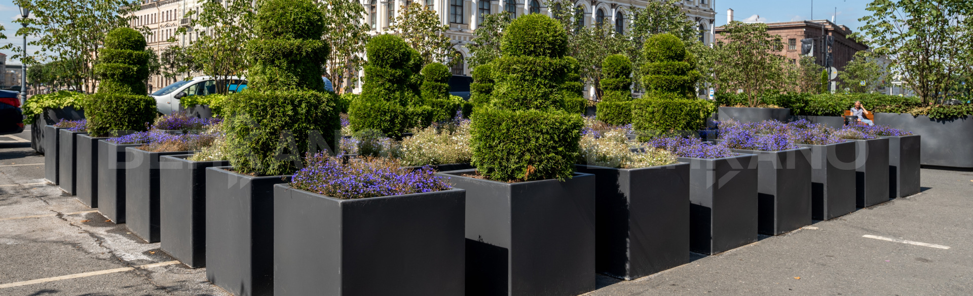 Наши кашпо изготовлены из высококачественного 3d пластика, который устойчив к воздействию влаги, солнечных лучей и других атмосферных явлений. Их дизайн и гармоничное сочетание с архитектурой площади придали ей уникальный вид, свежесть и оригинальность.