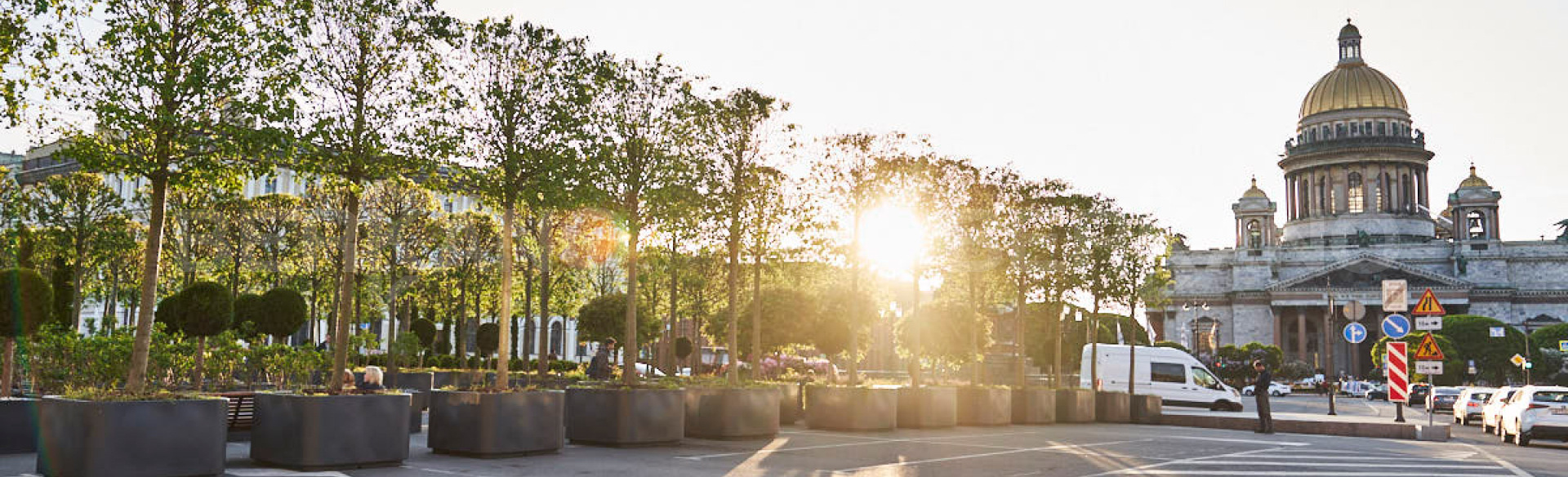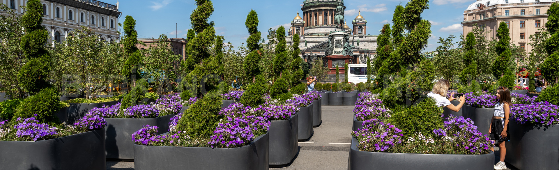 Впервые на Исаакиевской площади открыли регулярный летний сад накануне 320-летия со дня основания Санкт-Петербурга . В кашпо производства Berkano высажены 104 липы, а также туи, клёны и другие растения и цветы.