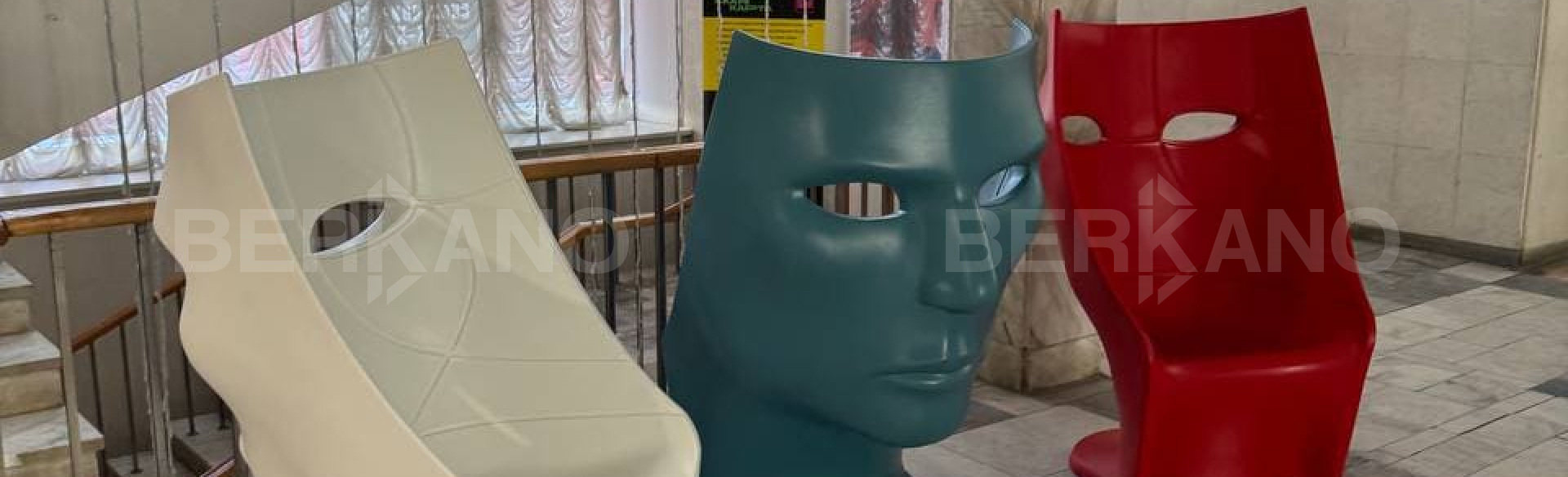 В холле выставочного зала были установлены кресла SOMF в цветах российского триколора.